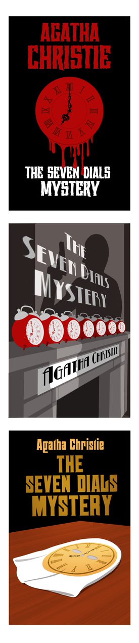 The Seven Dials Mystery is an Agatha Christie novel, which of course means murder and mystery. My assignment here, for my graphic design course, was to make a cover for the book, one that would “catch the eye” in a book store…. the result is above, but I thought I’d show a little of the process here.