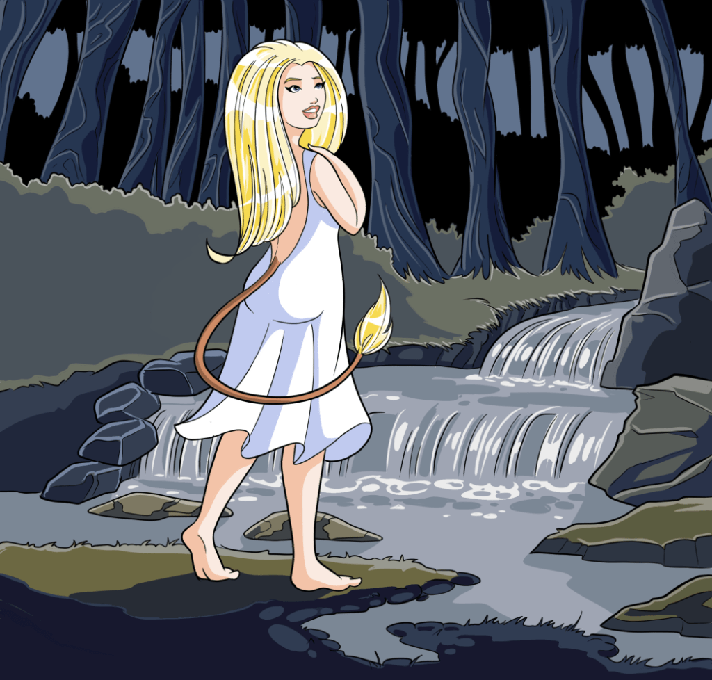 A beautiful woman who roams around the forest and sings the prettiest songs. She looks completely human, except for the fact that she has the tail of a cow. Mostly she’s depicted as a dangerous temptress who lures people deeper into the forest with her enchanting song, and then takes them to her home underground where they’ll stay forever. However, there are plenty of stories where she’s depicted more positively; if you’re polite to her she can be kind and generous, and she’s a friend to coal-burners, often watching the fire while the coal-burner sleeps. A curious addition is that if the Huldra marries a human man, in a human church, her tail will fall off and she’ll become human – except she’ll keep her supernatural strength, so the husband had better be good to her. (Her Swedish cousin, the skogsrå, has a hollow back and looks like a hollowed-out tree from behind.)
