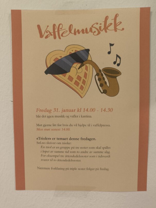 Just a little picture I drew for the “waffle music” get-togethers at FunkWeb. The last Friday every month, the administration invites candidates and employees to eat waffles and listen to music. I designed the poster they put up on the wall.